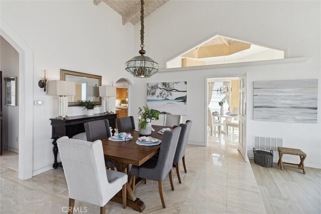 Embrace the coastal lifestyle with unobstructed ocean views from every room stretching from Point Loma to Pacific Palisades with views of Catalina Island and Dana Point. The spacious living room features Cathedral ceilings and a cozy fireplace, while the ex-large primary bedroom on the main level, boasts its own fireplace and an oversized walk-in closet. Relax in the primary bathroom's separate shower and tub, with dual sinks adding a touch of luxury. Formal dining room creates an elegant ambiance. Kitchen offers an island and bar area and a separate eating area with yet another fireplace. Enjoy views from every room in this custom-built home, perfectly designed to capture the beauty of its surroundings. This residence epitomizes coastal living at its finest, with access to world-renowned beaches just moments away. Welcome to your slice of paradise!